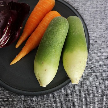 珍しい野菜シリーズ 2017年12月15日 食 溢れたモノの断捨離をきっかけにシンプルライフ×シンプルスタイルをはじめた湘南在住、DAHLIA★デス只今、豊かなシンプルな暮らしに移行中。*先日頂いた旬の野菜。名前を聞いたけれどスッカリ忘れてもうた、、、w▽黄緑色と薄黄色の野菜はなんと大根!!長さ20センチほど