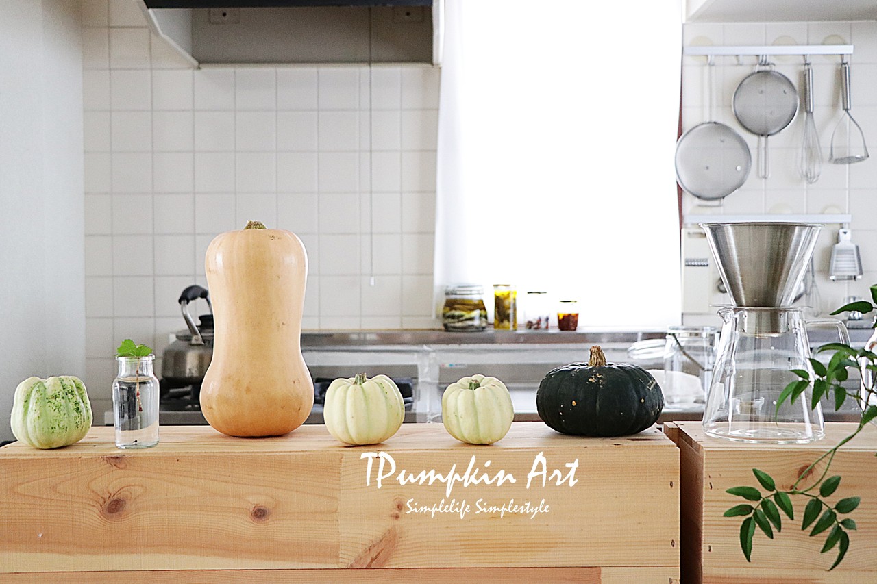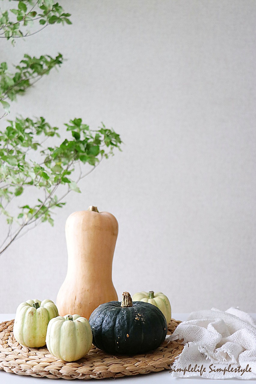 今月は南瓜を一列に並べて