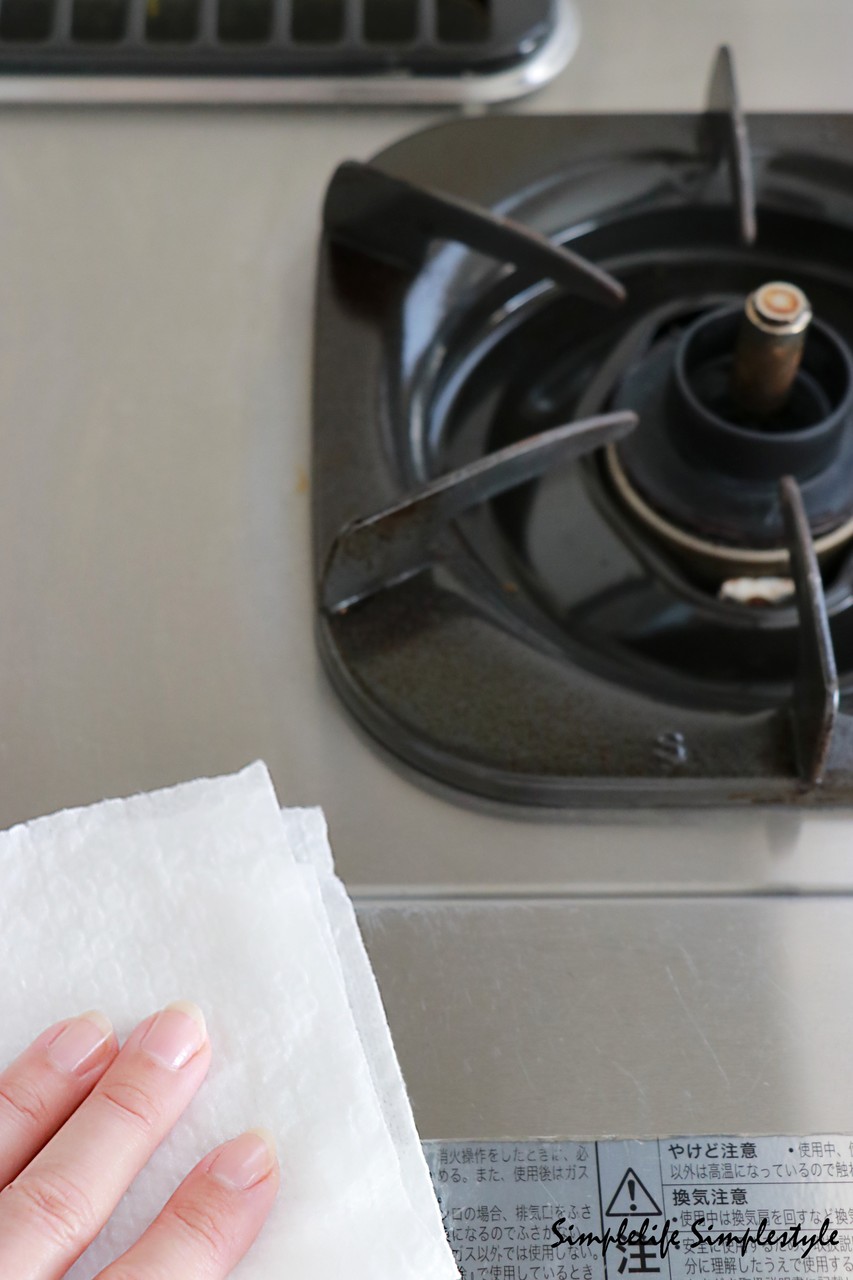 ガスコンロ周りを拭く