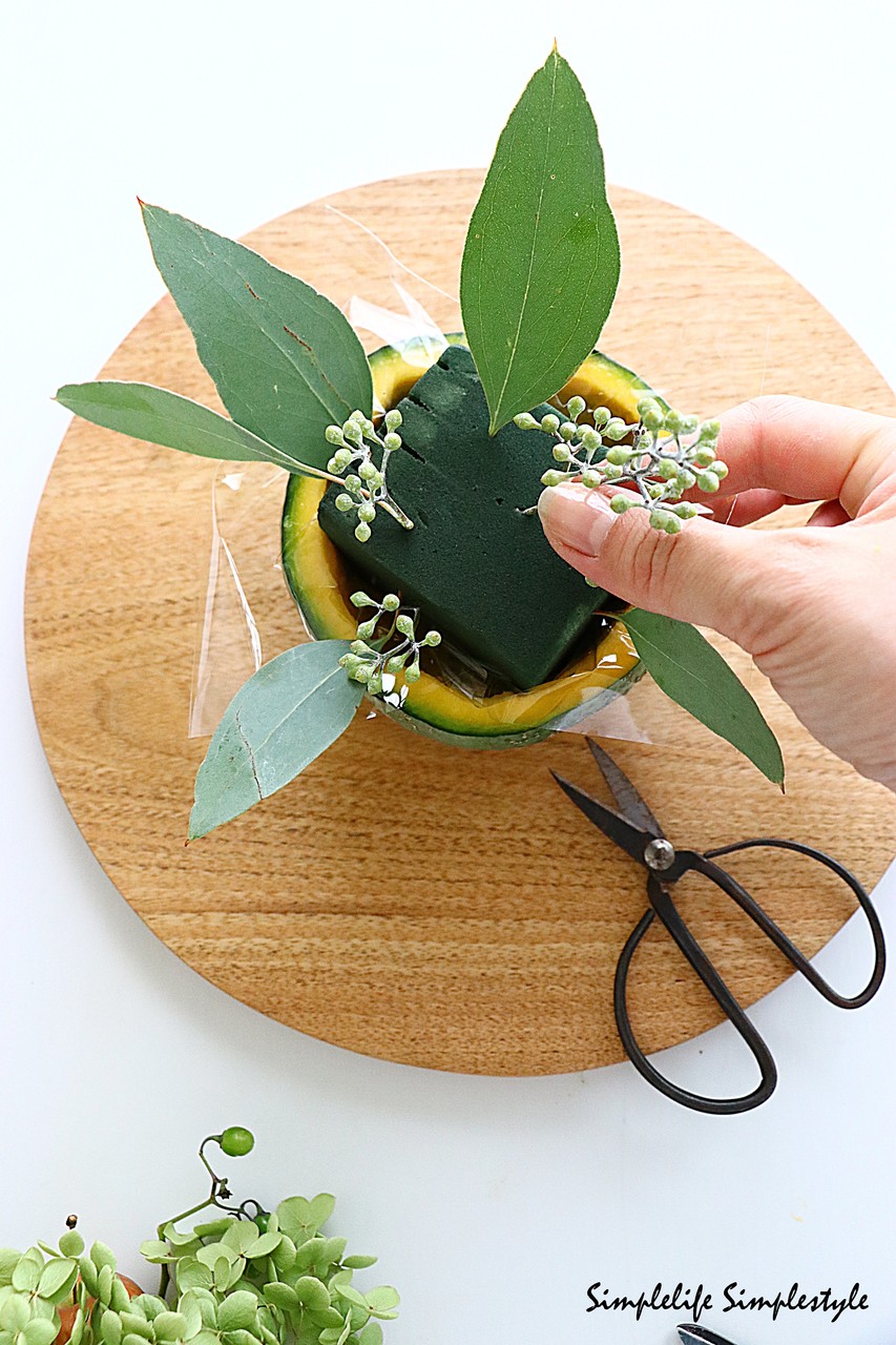 全ての花材を挿して出来上がり!!