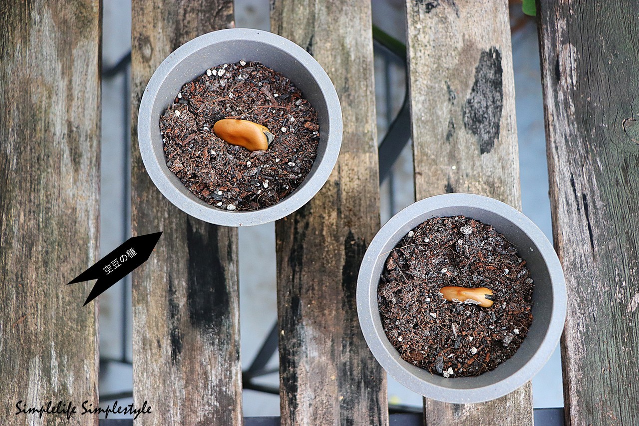 頂いたそら豆の種を植えてみました。