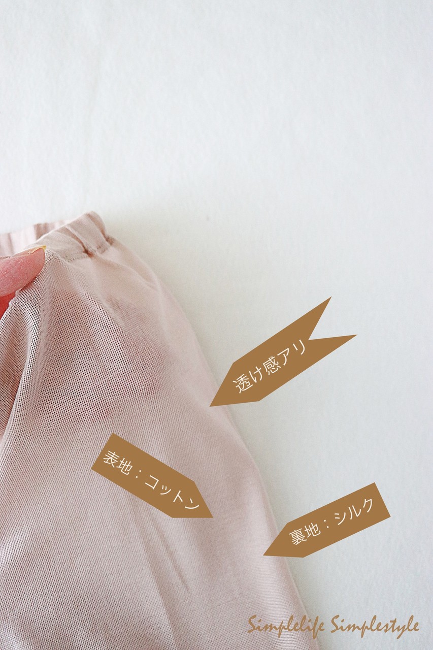 外側はコットン100%、内側がピュアシルク100%です。