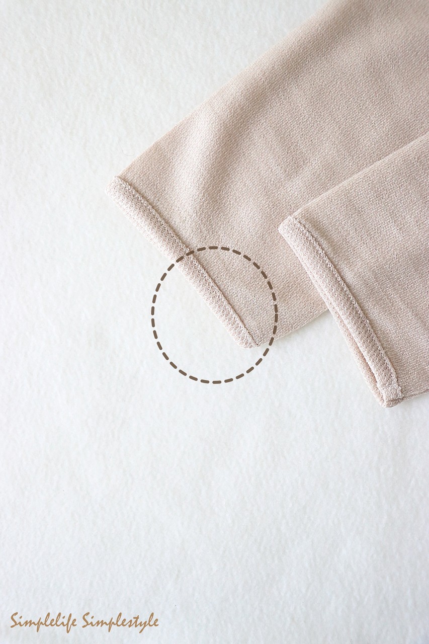 襟ぐりや袖口の折り返し部分は
