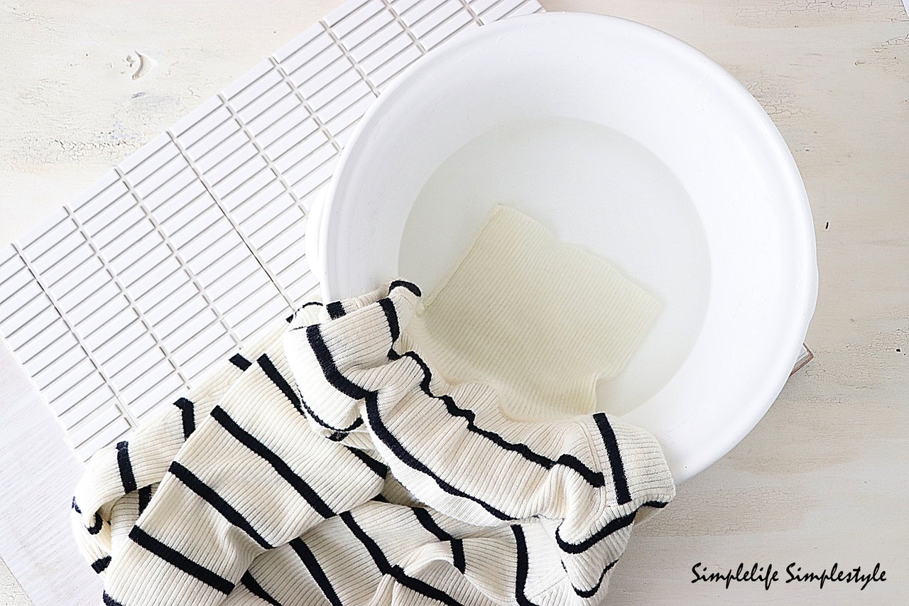 熱湯に浸けて洗濯してみますが
