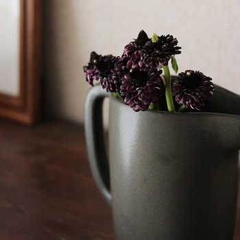花がある暮らし|春らしくないマニアックなラナンキュラス 2019年03月16日 気温も暖かくなり、長く楽しめていた春の花もあっという間に咲き乱れるようになってきました。今週、自宅に連れて帰ってきた花はラナンキュラス。新種のラナンキュラスで万人受けしなさそうな色と姿!(爆)IKEのピッチャーに活けてダークトーンで纏めてみました。早くも花び