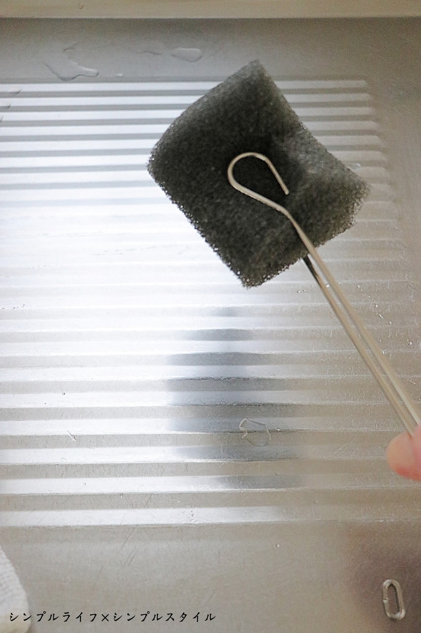食器洗い用のスポンジを挟んで