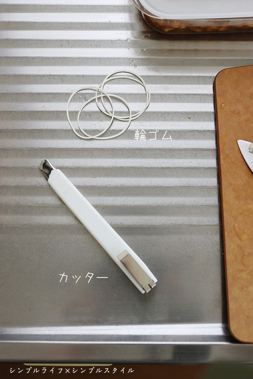 輪ゴム2つとカッターだけ。
