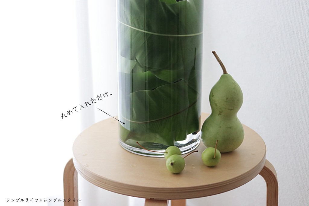 丸めて入れれば花器の中が隠れて