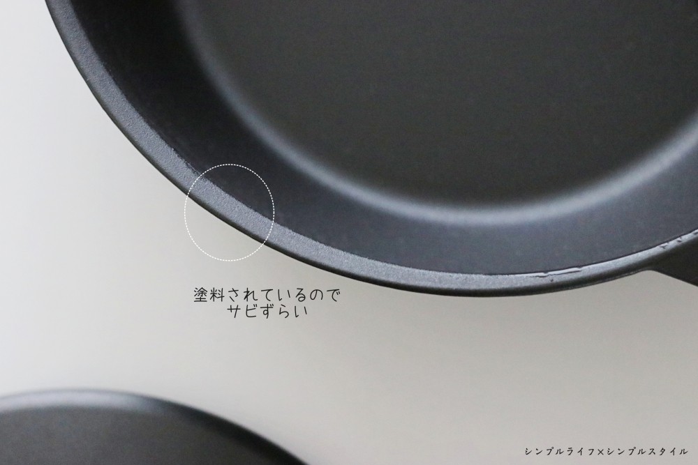 ①鍋本体のフチも塗装されているので