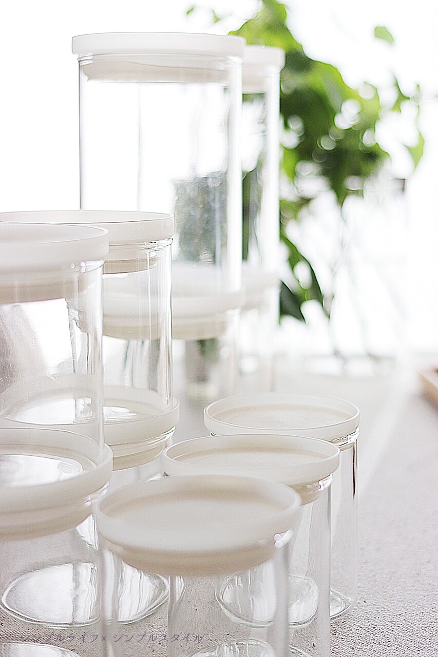 全ての保存容器テーブルの上に