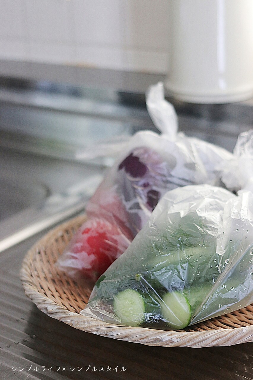 ビニール袋に入れて冷蔵庫へ。