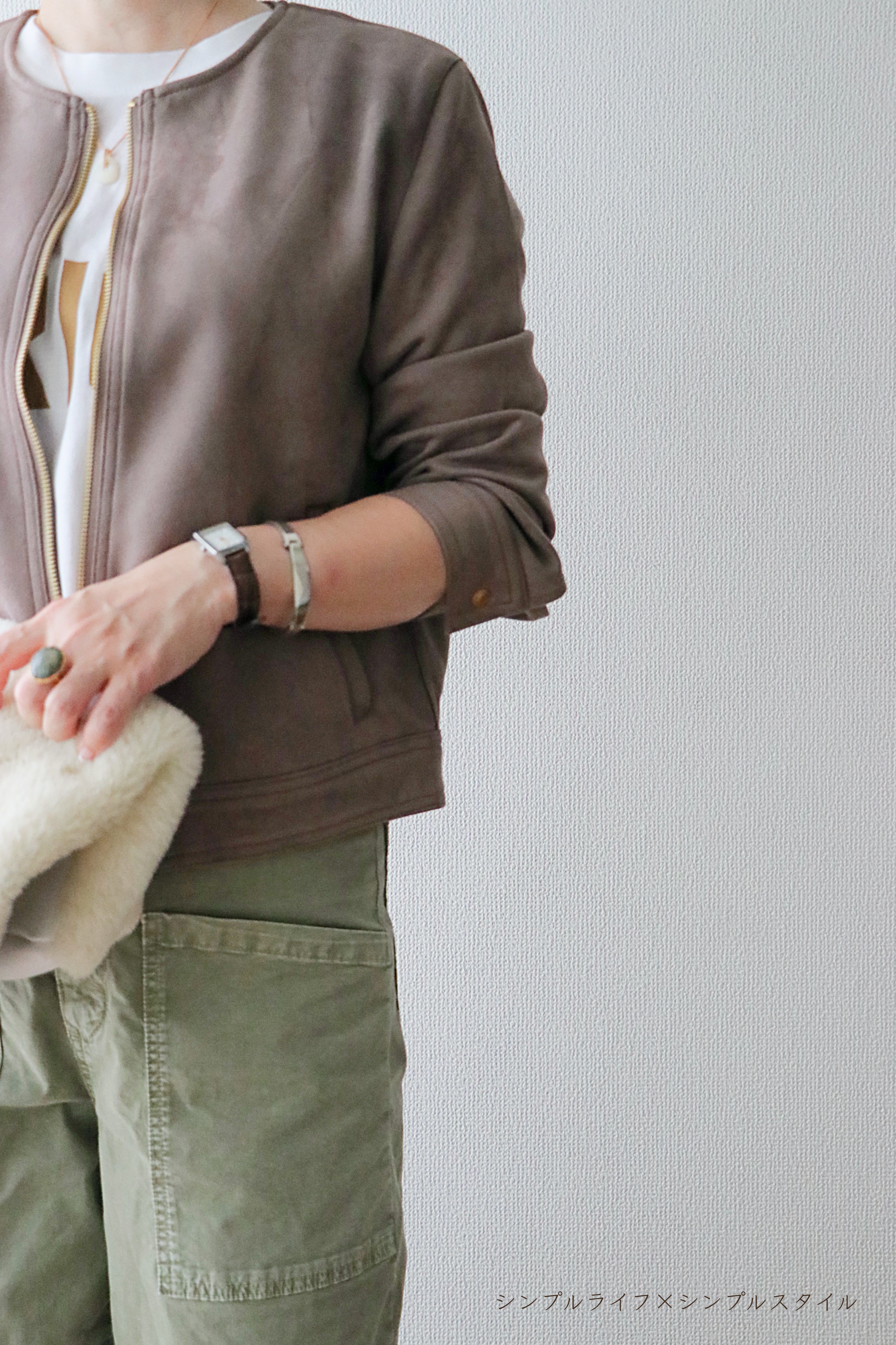 スウェード調のジャケットを