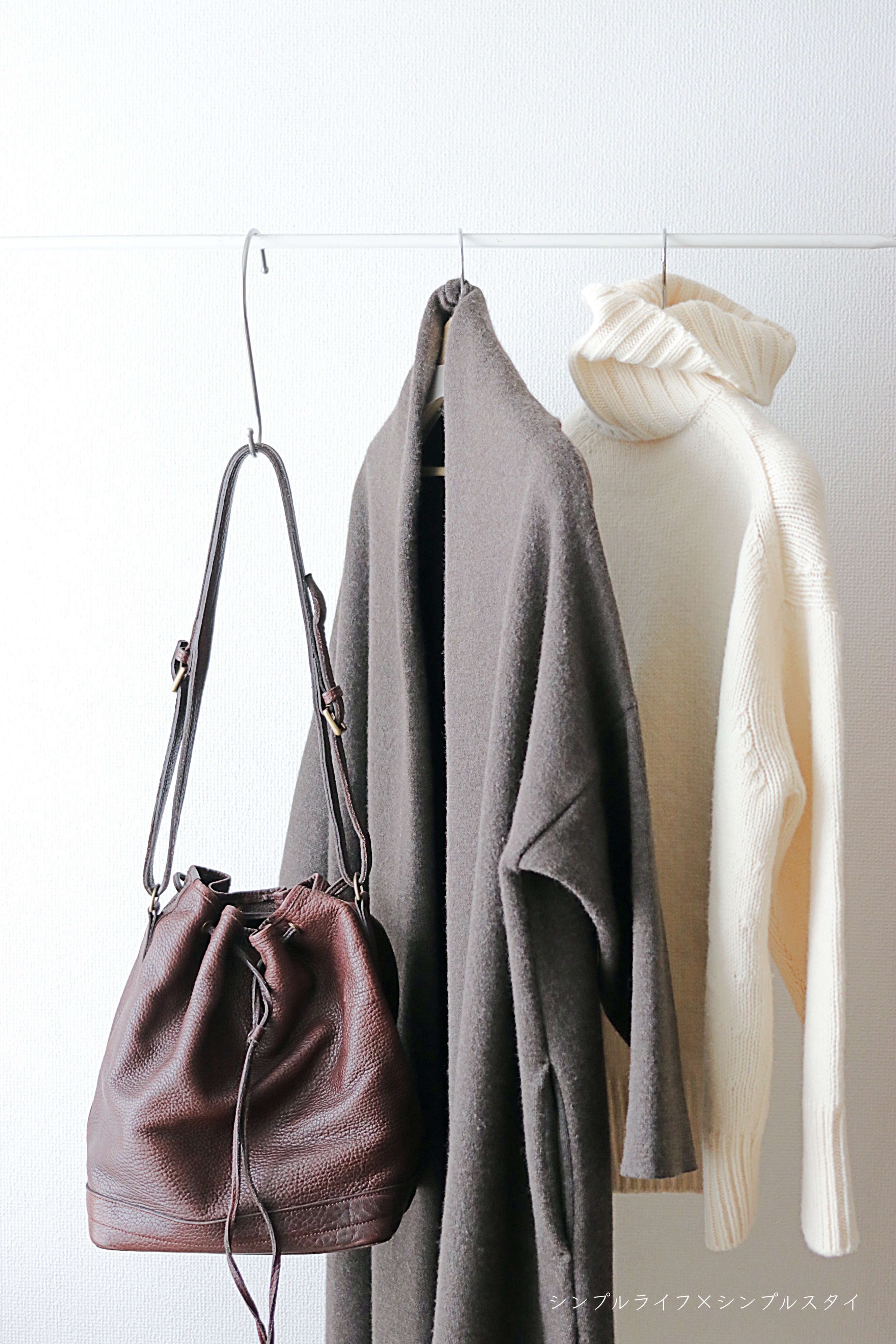 タートルネック、バッグは