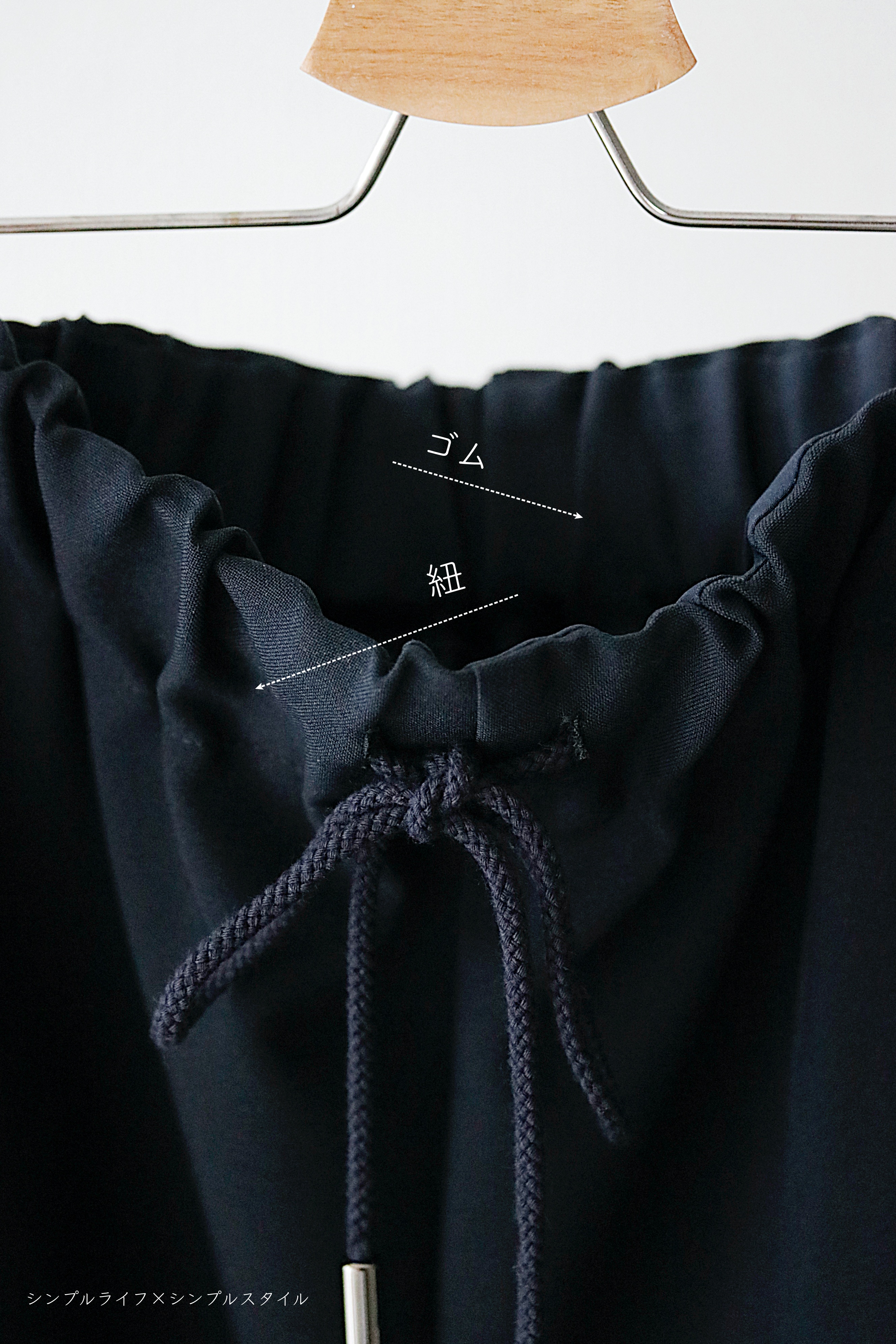 ウエスト周りりがゴムと紐で