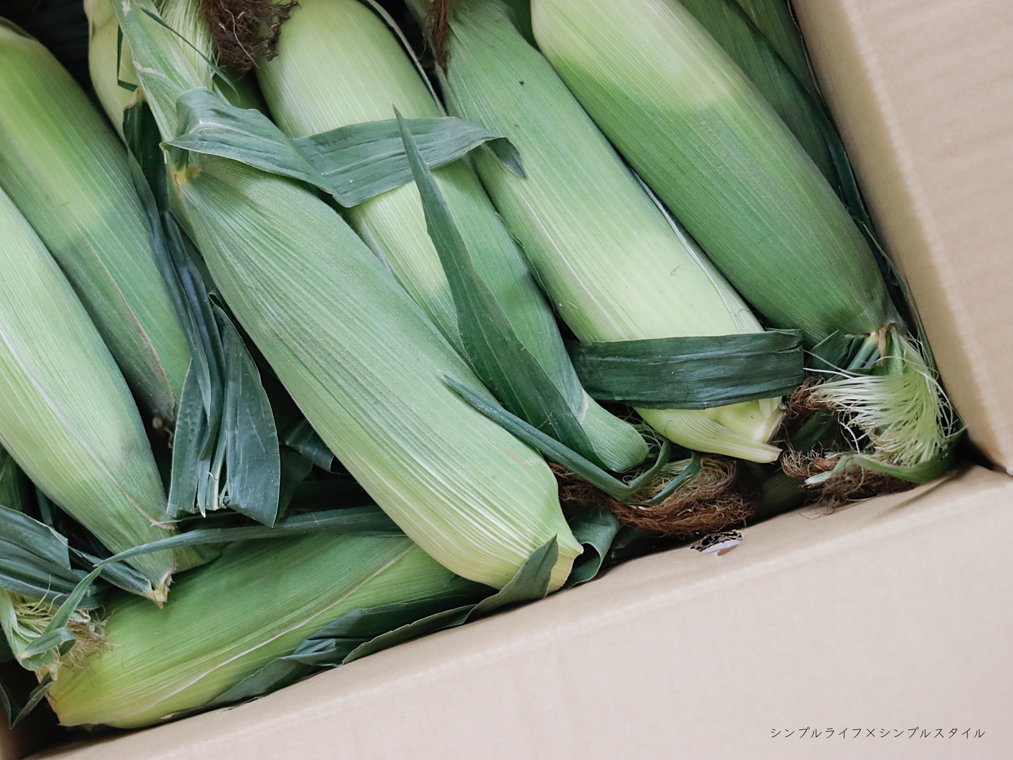 朝に収穫したトウモロコシを