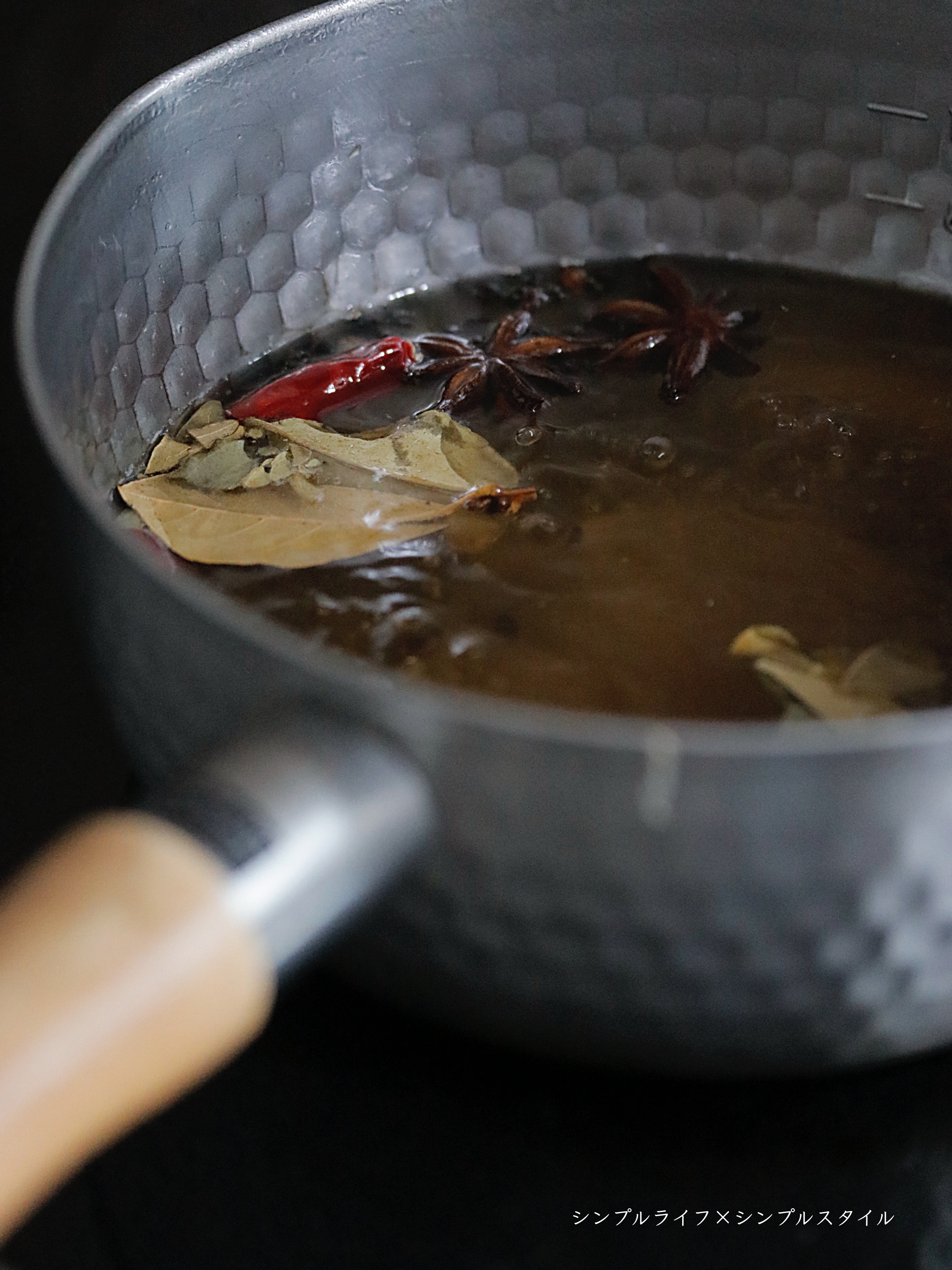 汁にスパイスを投入し