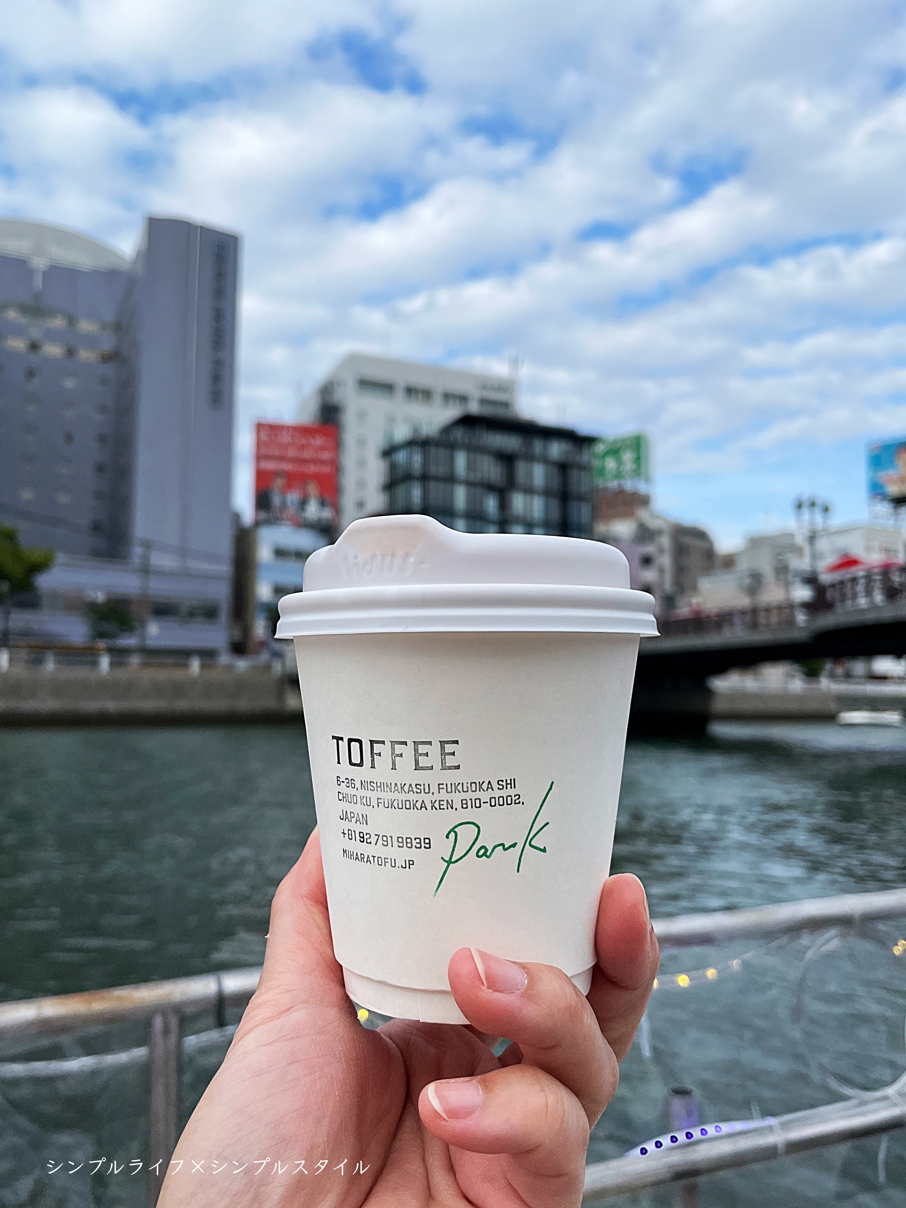 TOFFEEの豆乳ラテを持ち込み、