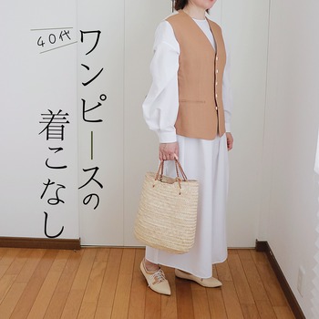 大人の春コーデ|ワンピースの着こなし(3) 2024年05月04日 少ない服 春先に購入したワンピース工夫して着こなさないと骨格ストレートあるある状態に スッキリ見せるには細ベルトが1番なんですがベルト頼りばかりでつまらないので・・・・。夏にも使えるベストを購入してみました!若干、顔がくすむような色味に躊躇しましたが取り寄せて着て