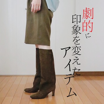 驚くほどコーデの印象を変えたモノ。 2024年10月22日 少ない服 似合うハズがないと諦めていた筒太のロングブーツあまりにも気になり店頭で試着してみると。意外や意外!スッキリ見えるではありませんか!!!やっぱり体験は大切。足を踏み入れたことのない未知の世界は傍観しているだけじゃダメ!この世は行動の星。体験を増やすことこそ