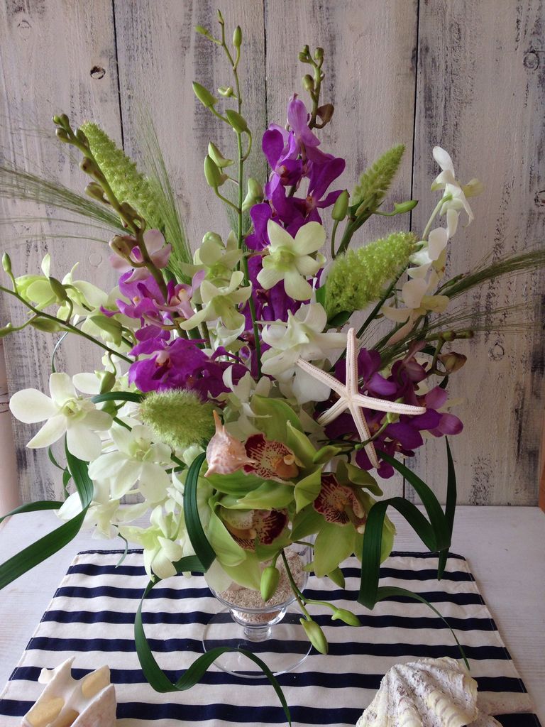 夏らしいランの花を使って。