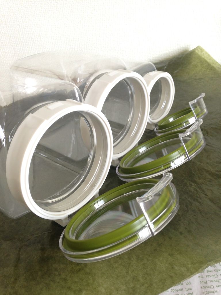 これ、私も使ってます~。ごまや粉唐辛子なんかも入れてます。中にはプラスチックの計量スプーンをいれて、すぐに計量できるようにしてるので、使いやすくなりました!