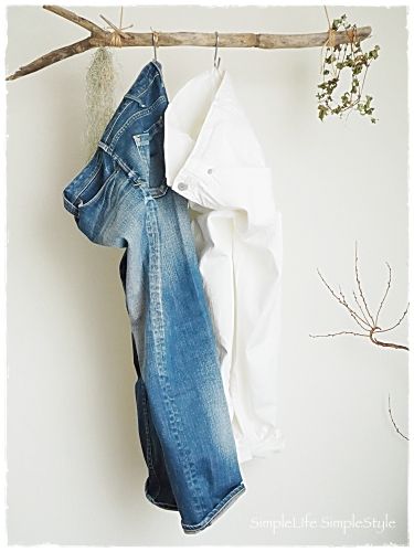 ブルーデニムにネイビーのシャツ。