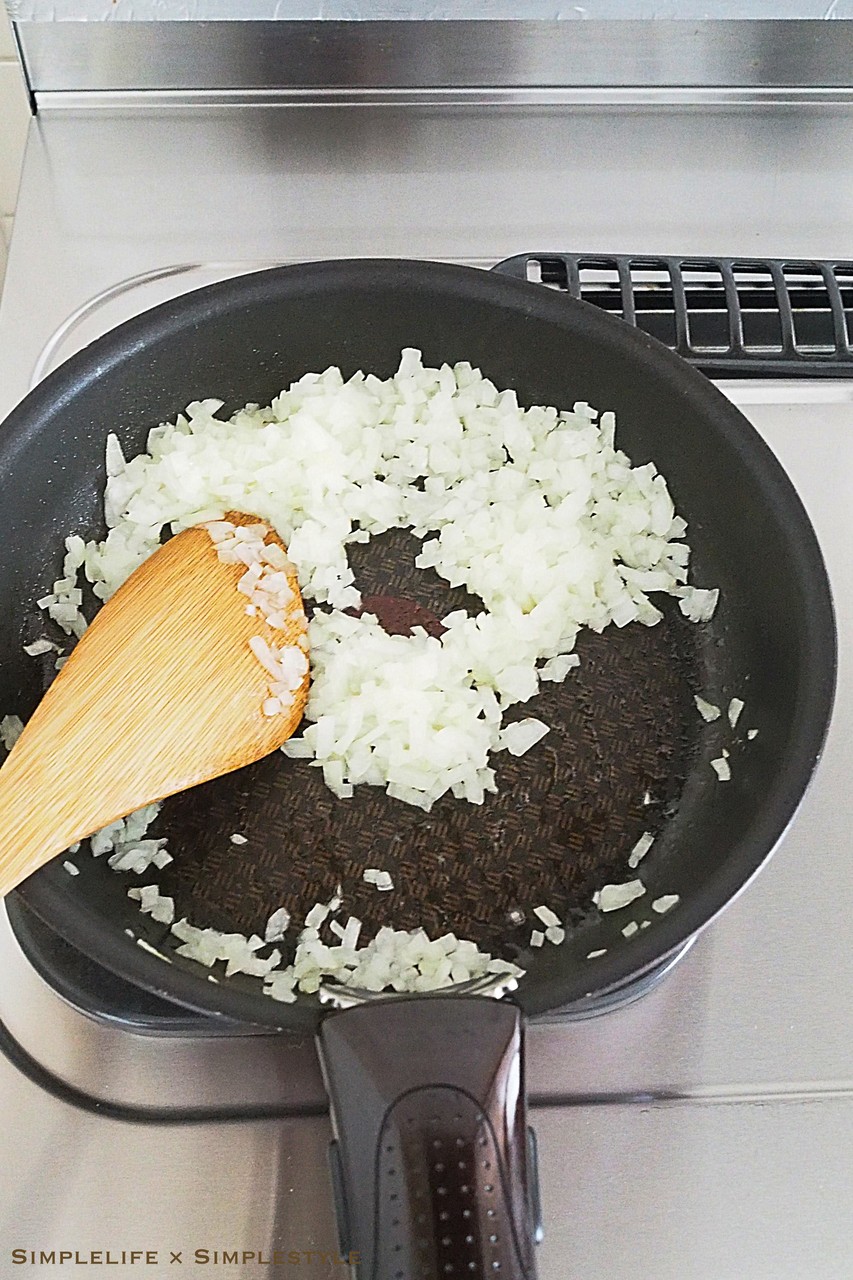 冷凍した玉ねぎをそのままフライパンへ投入し
