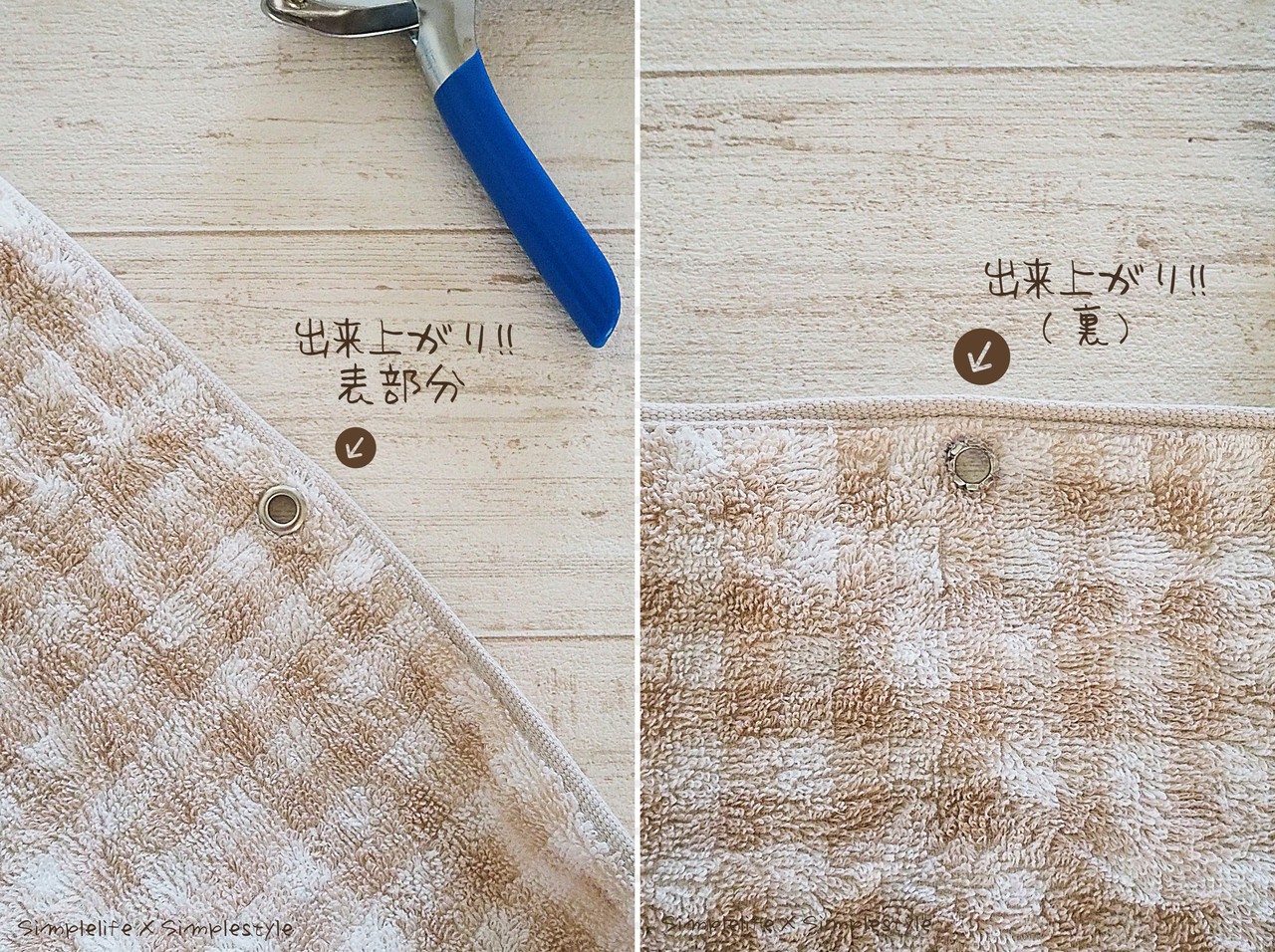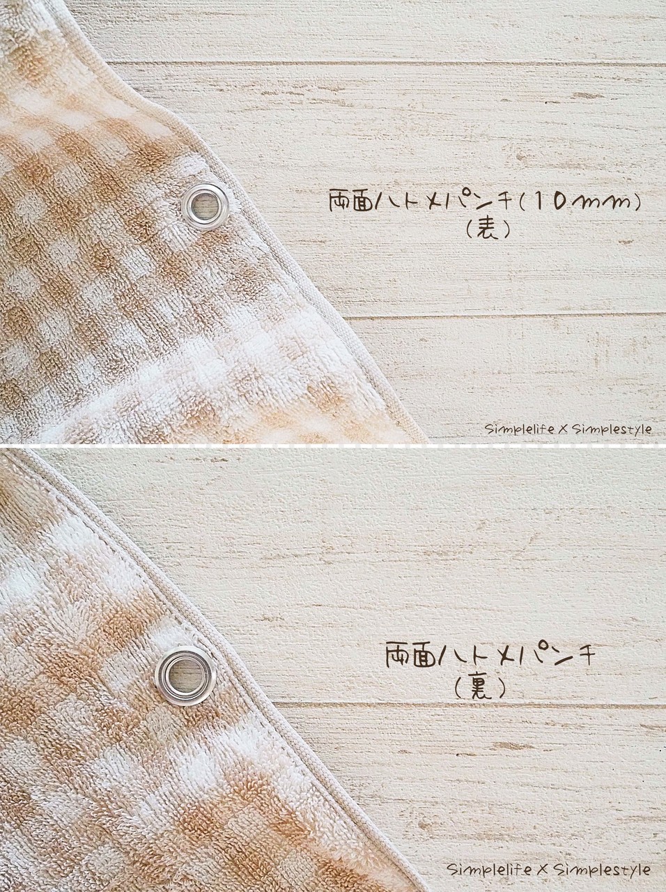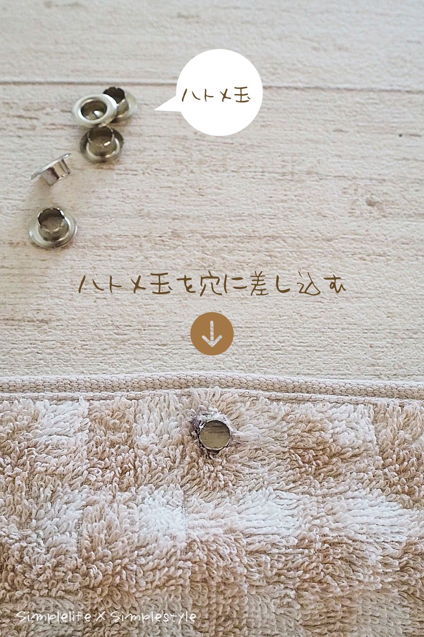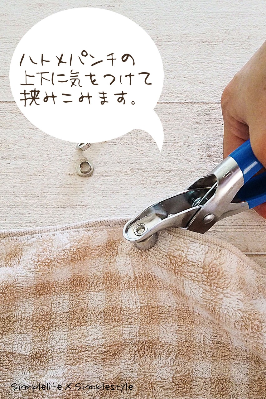 今回の、タオルにハトメ…。