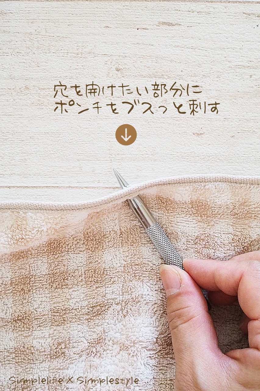 タオルは穴が開かずハサミでタオルをカットして穴を開けました。