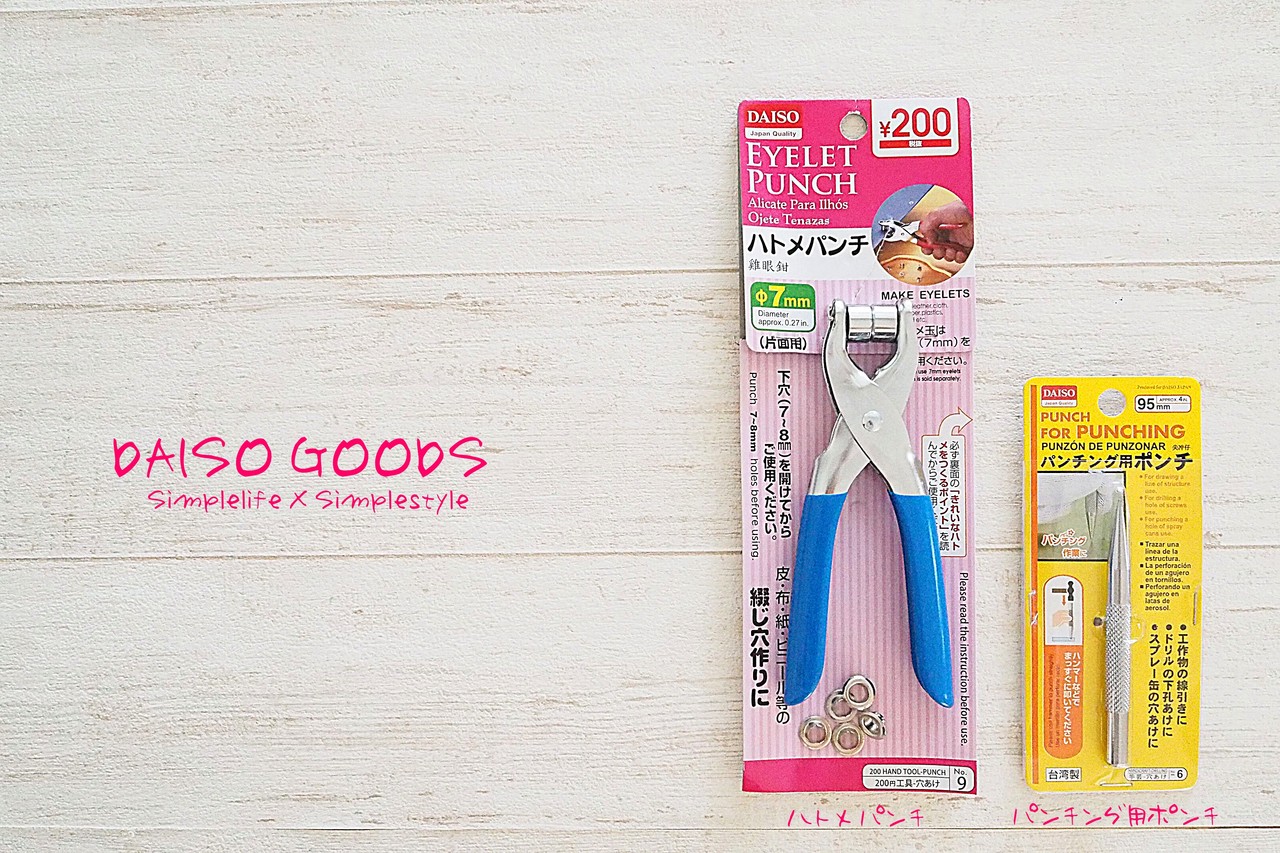 DAISOで購入したハトメパンチと穴あけ用のポンチ