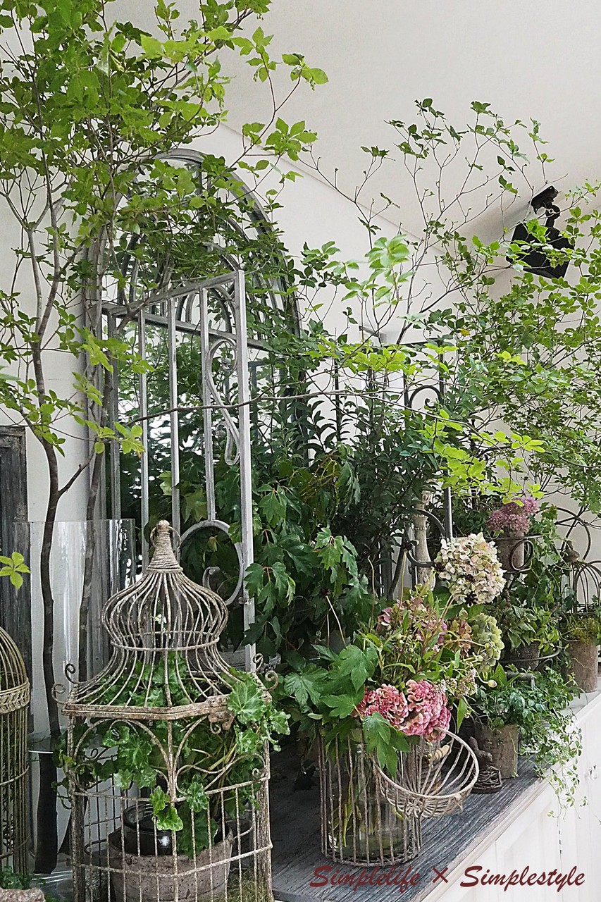 枝や花が部屋の全空間に活けられ
