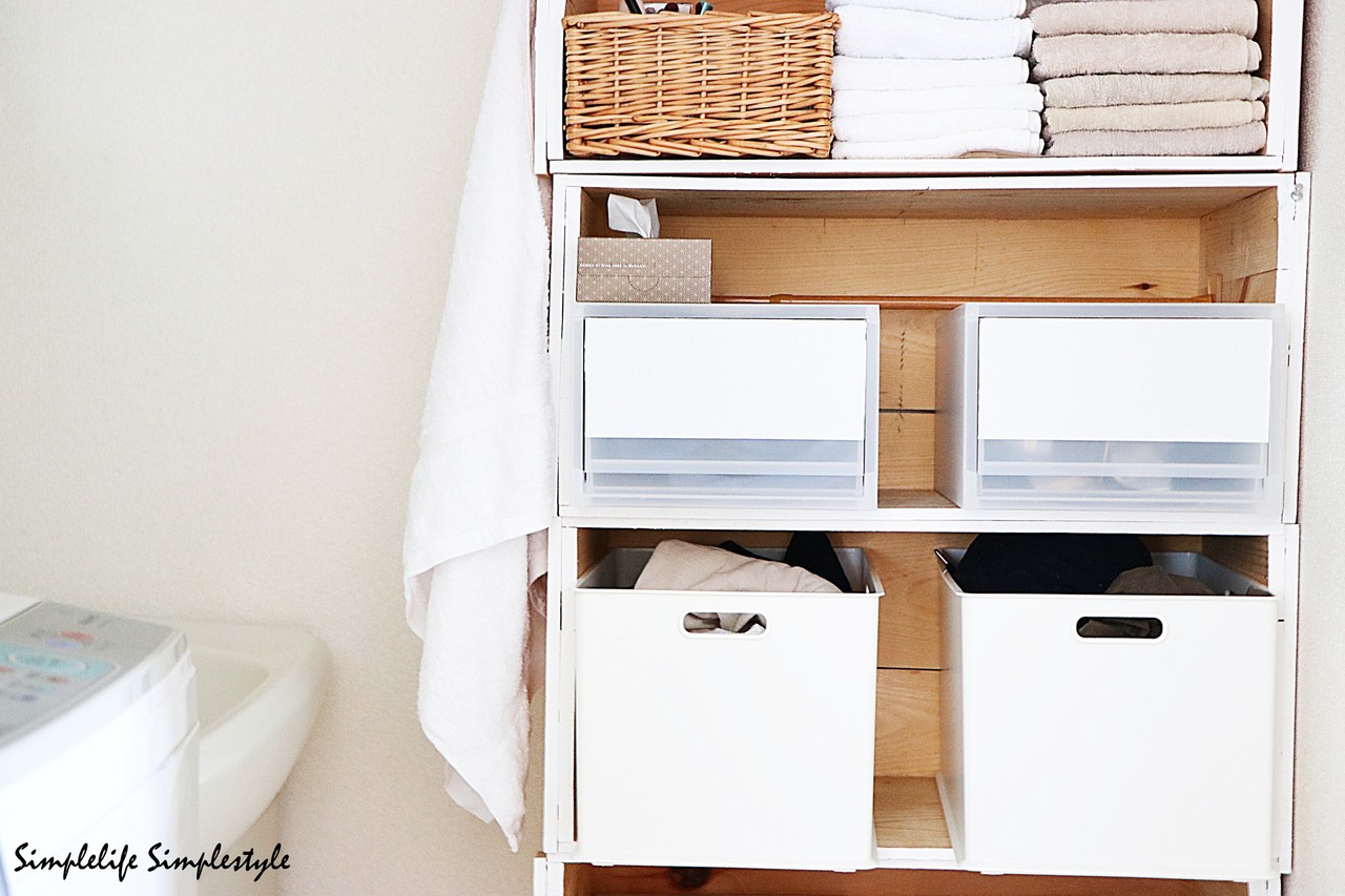 洗面所の家着入れとして。