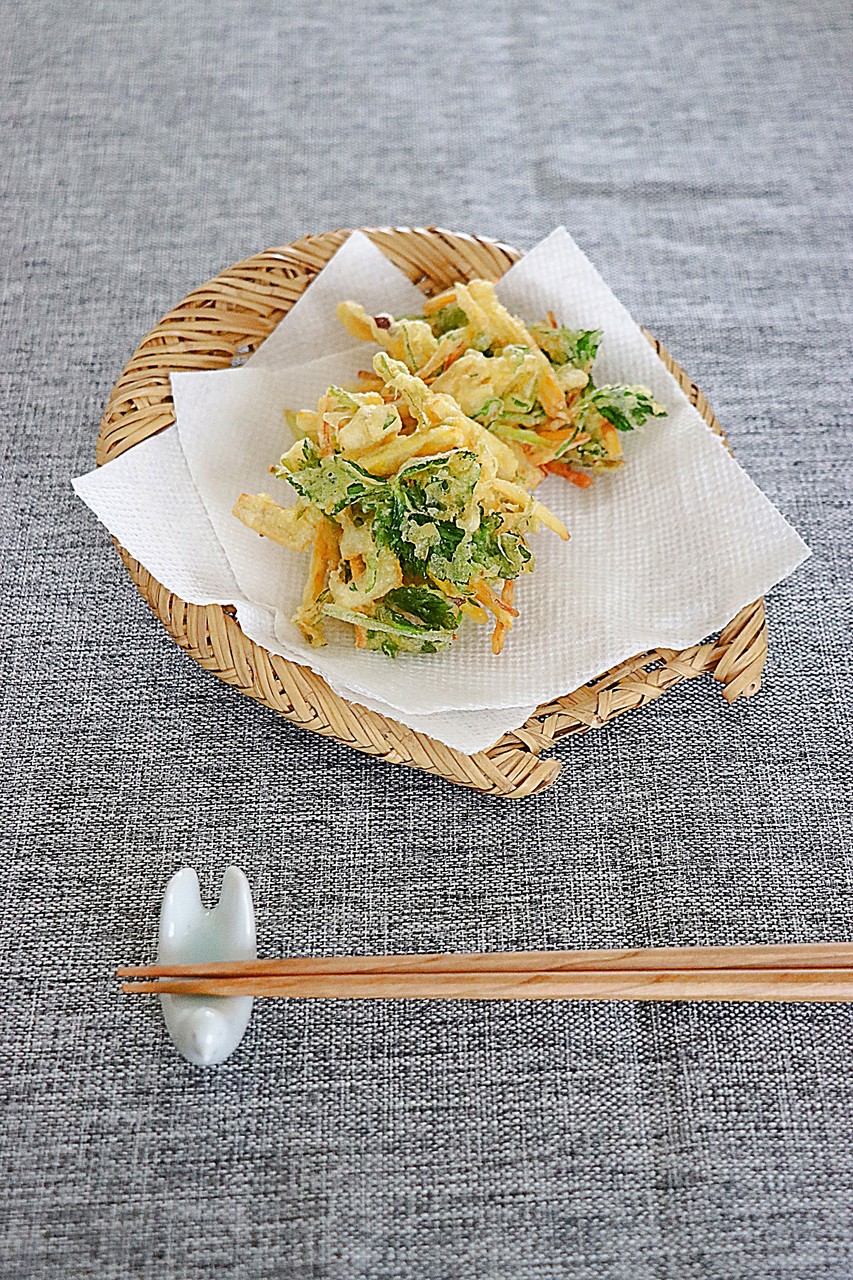 野菜室の中から余った野菜をかき揚げにして頂きます^^;