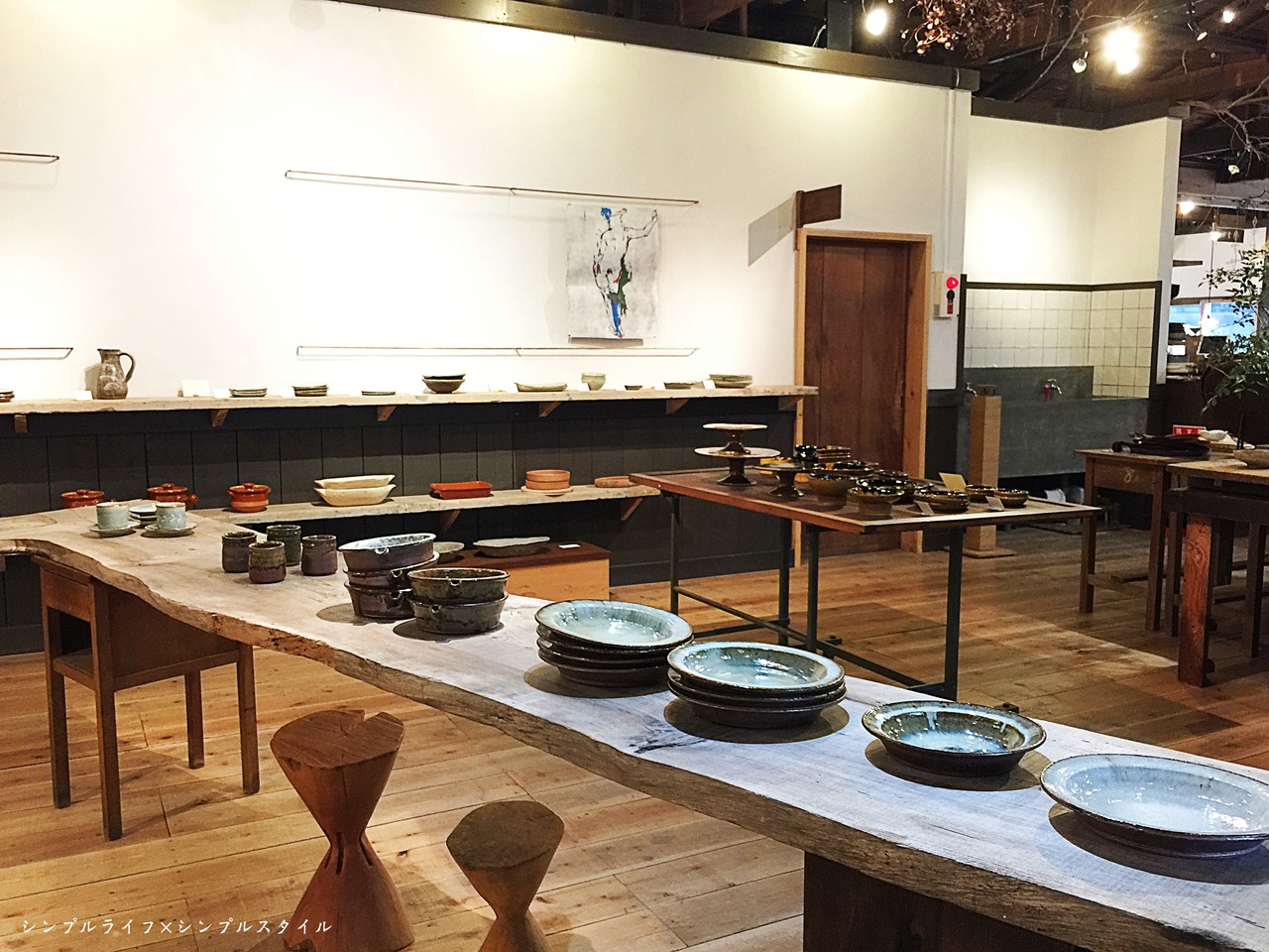 陶器や籠などたくさんの作品が