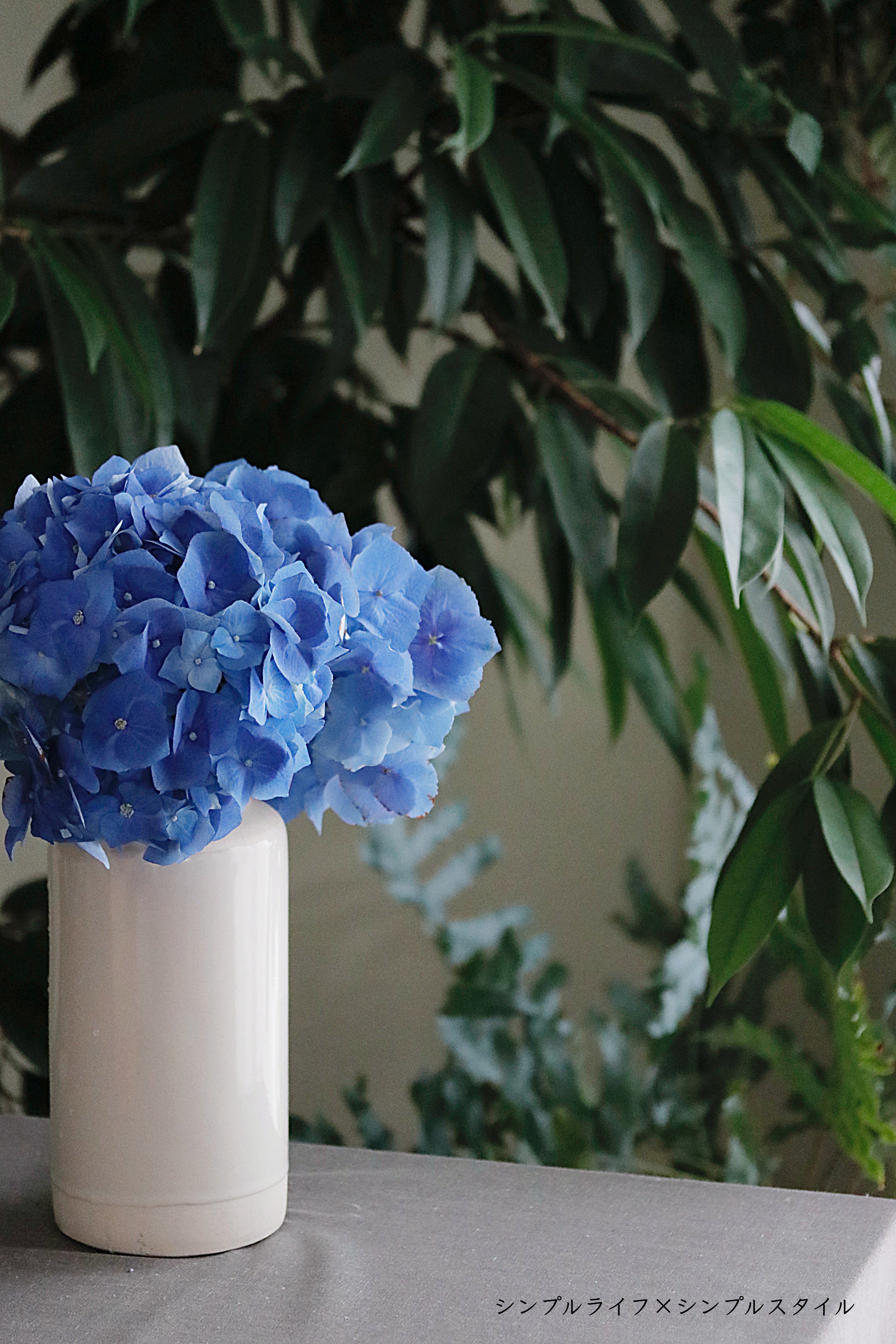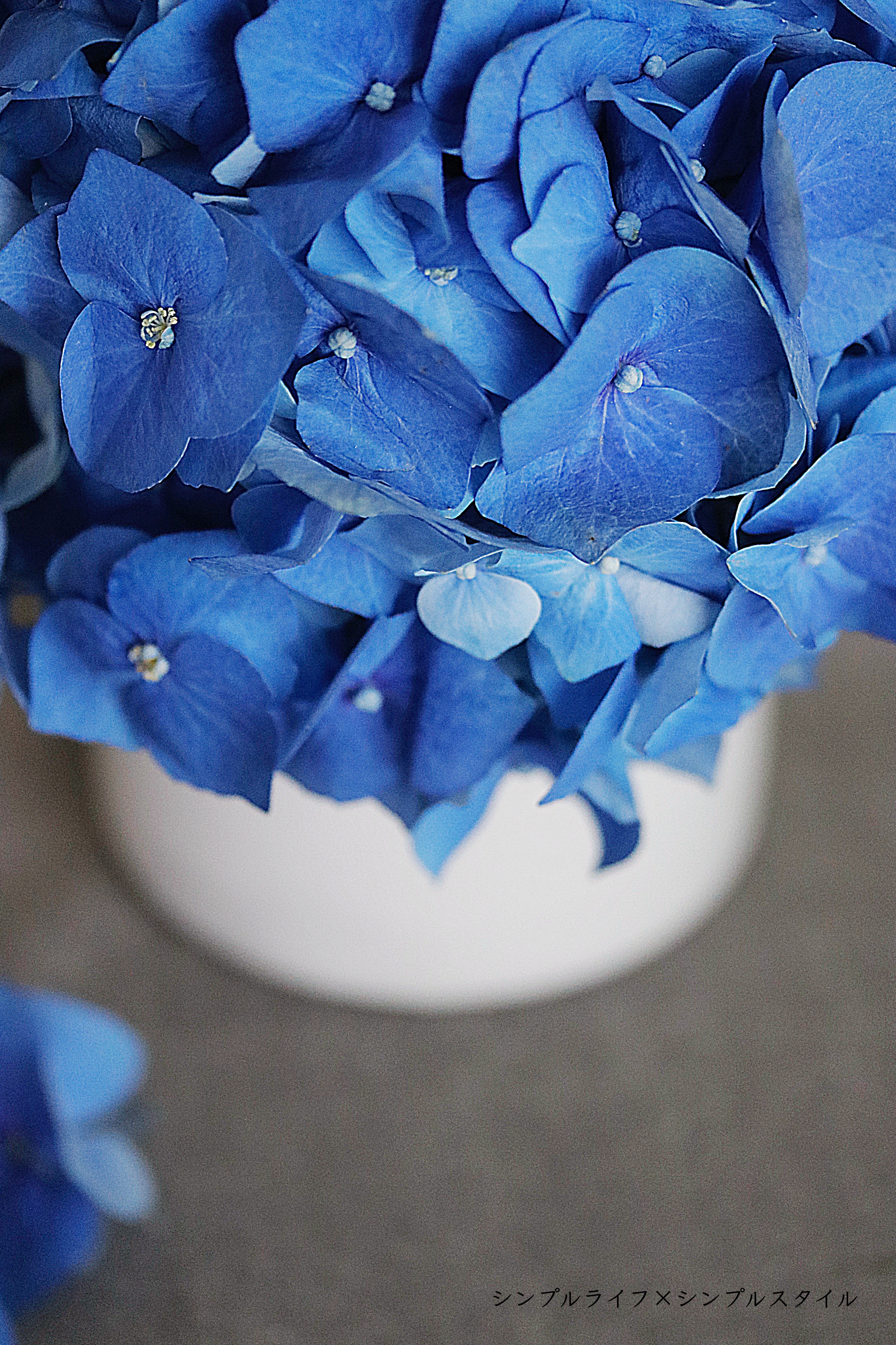 鮮やかなブルーの紫陽花に