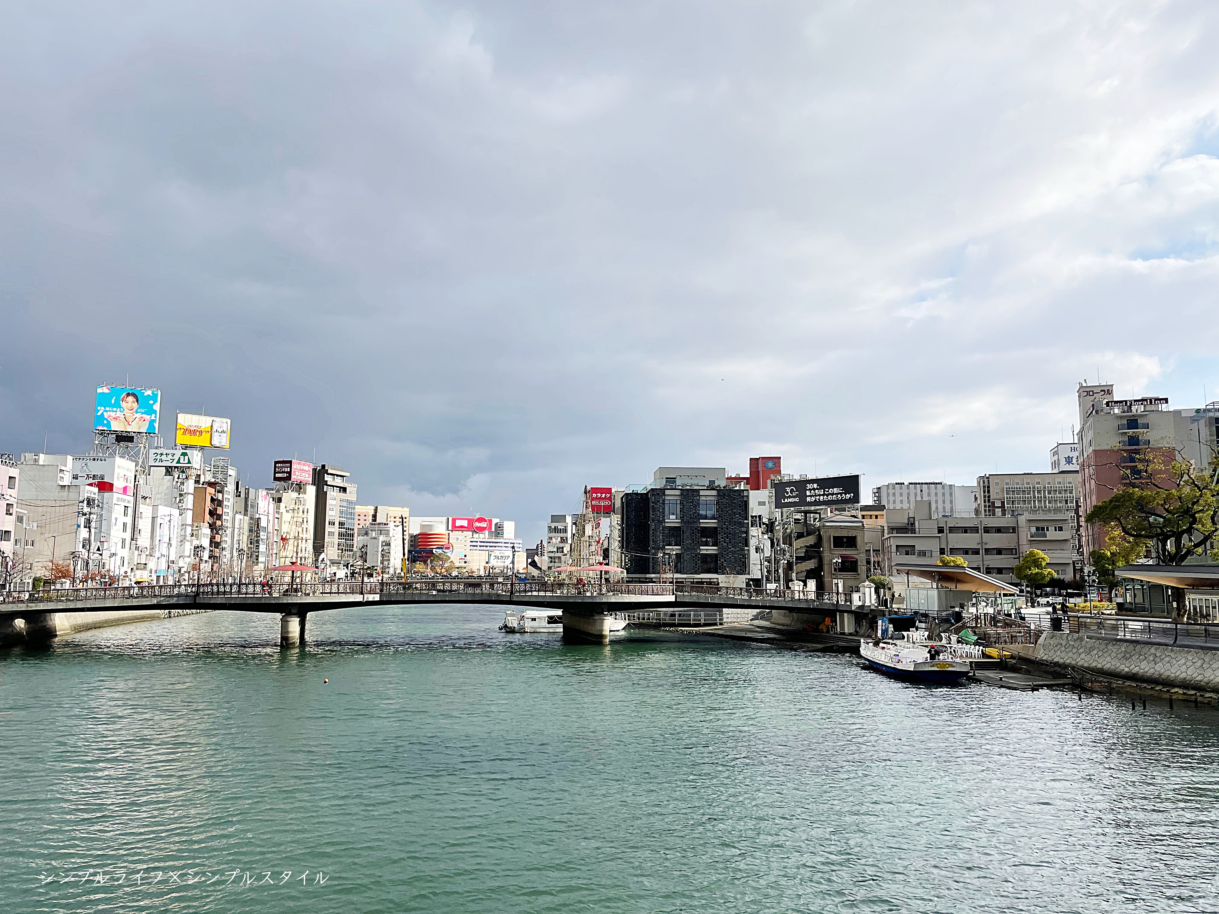橋のむこう側に見えるのはキャナルシティ。