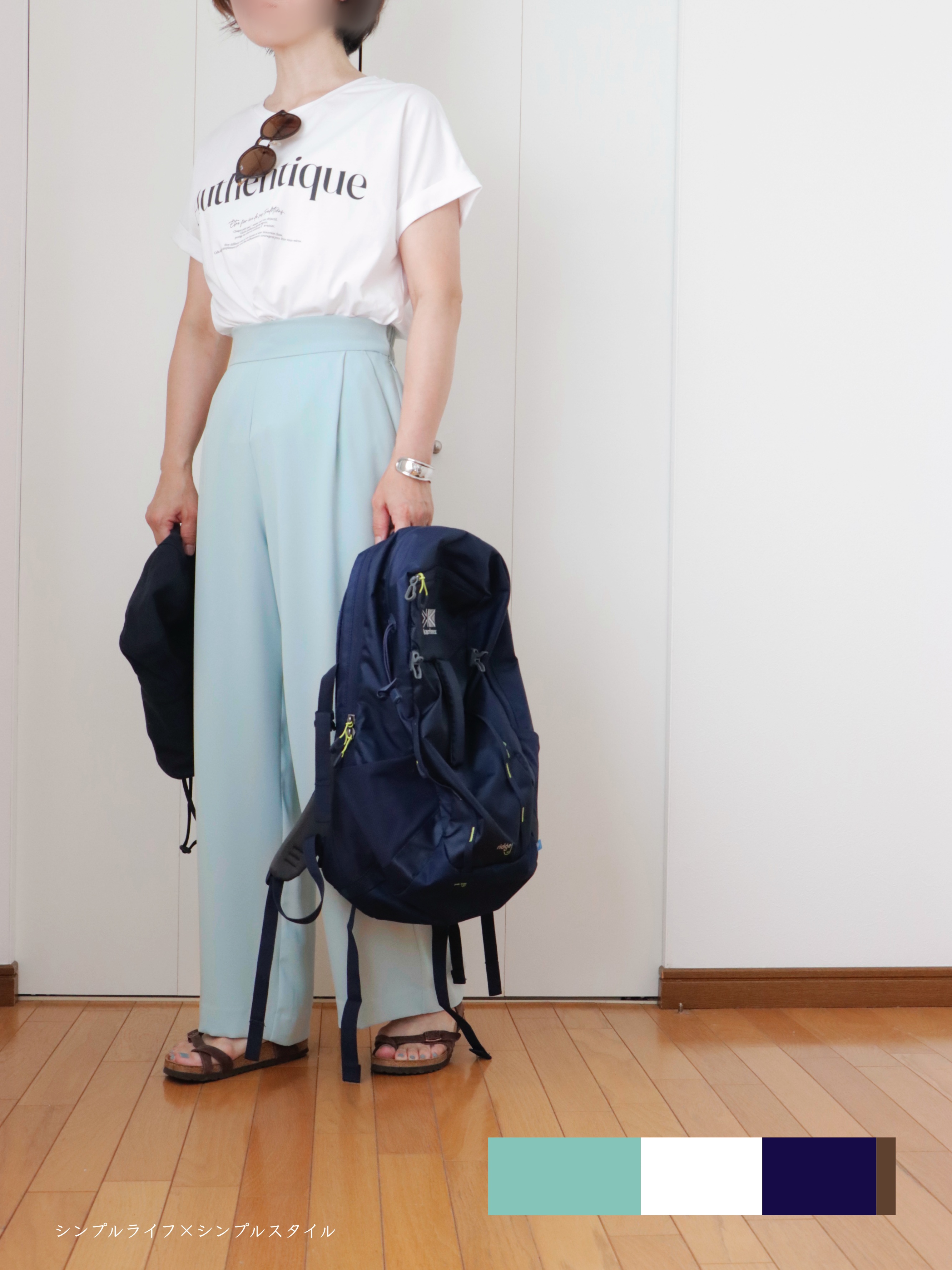 ホワイト&ネイビーで纏めたコーデ。