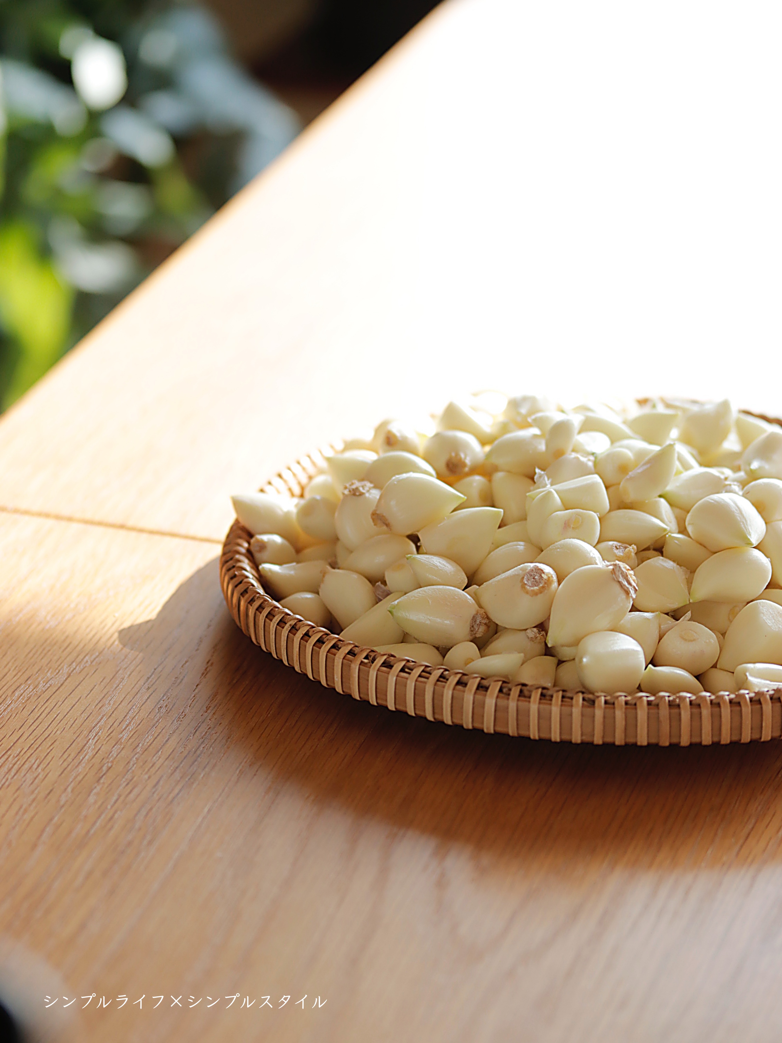 薄皮を剥いたニンニクは