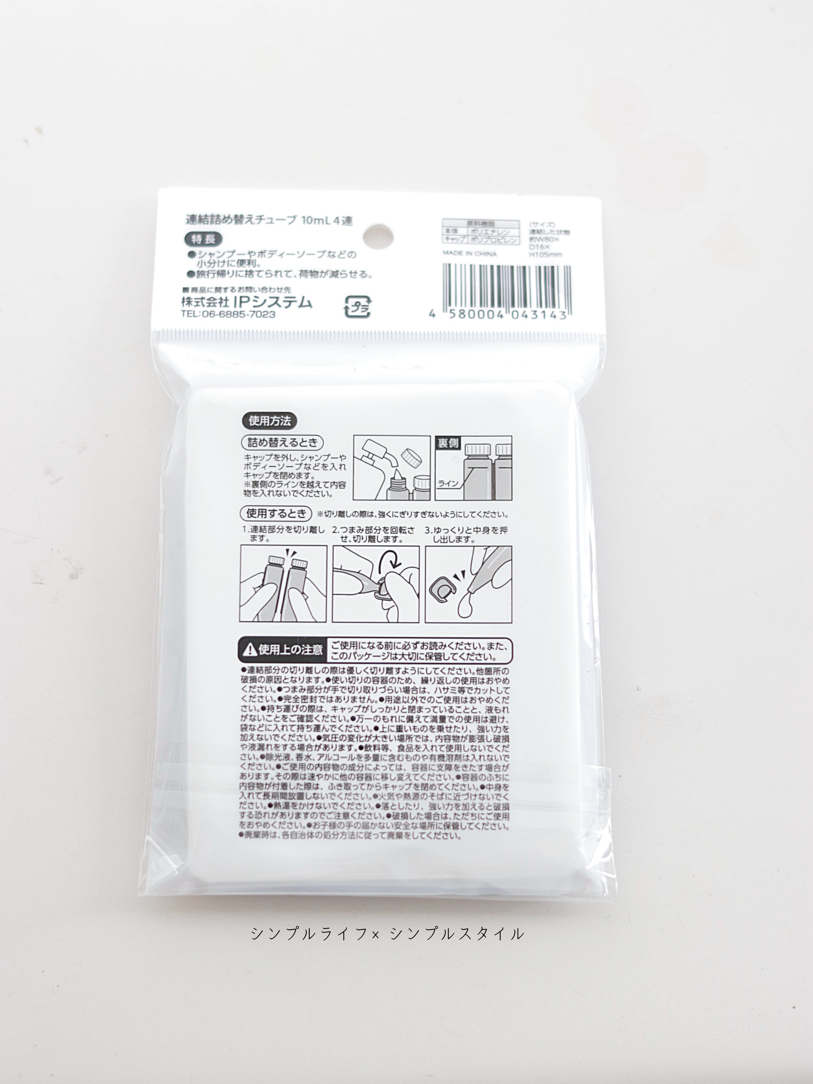 使い切りの詰替チューブ。