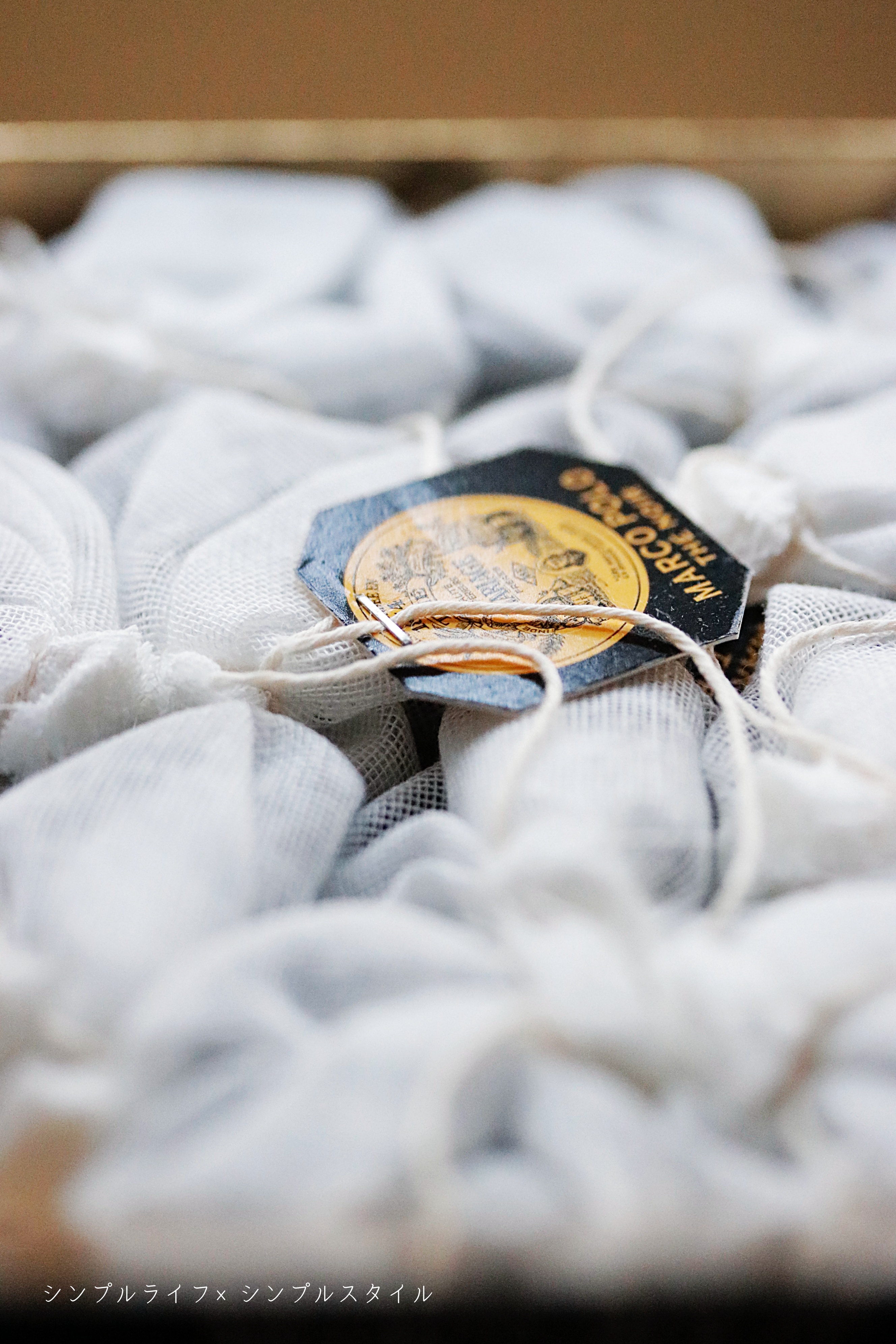 コットンに包まれた茶葉に
