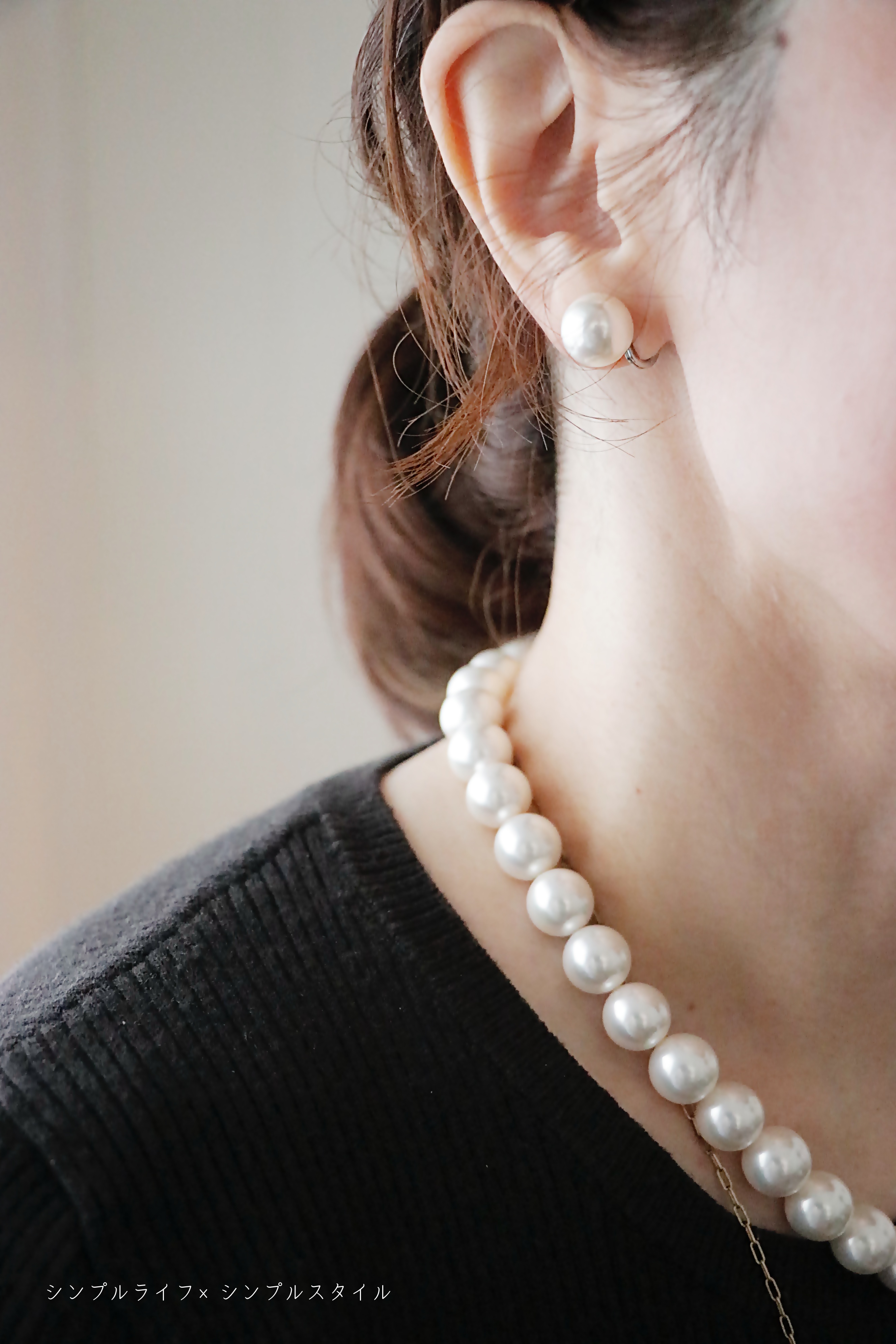 耳にも大粒のパールを1粒