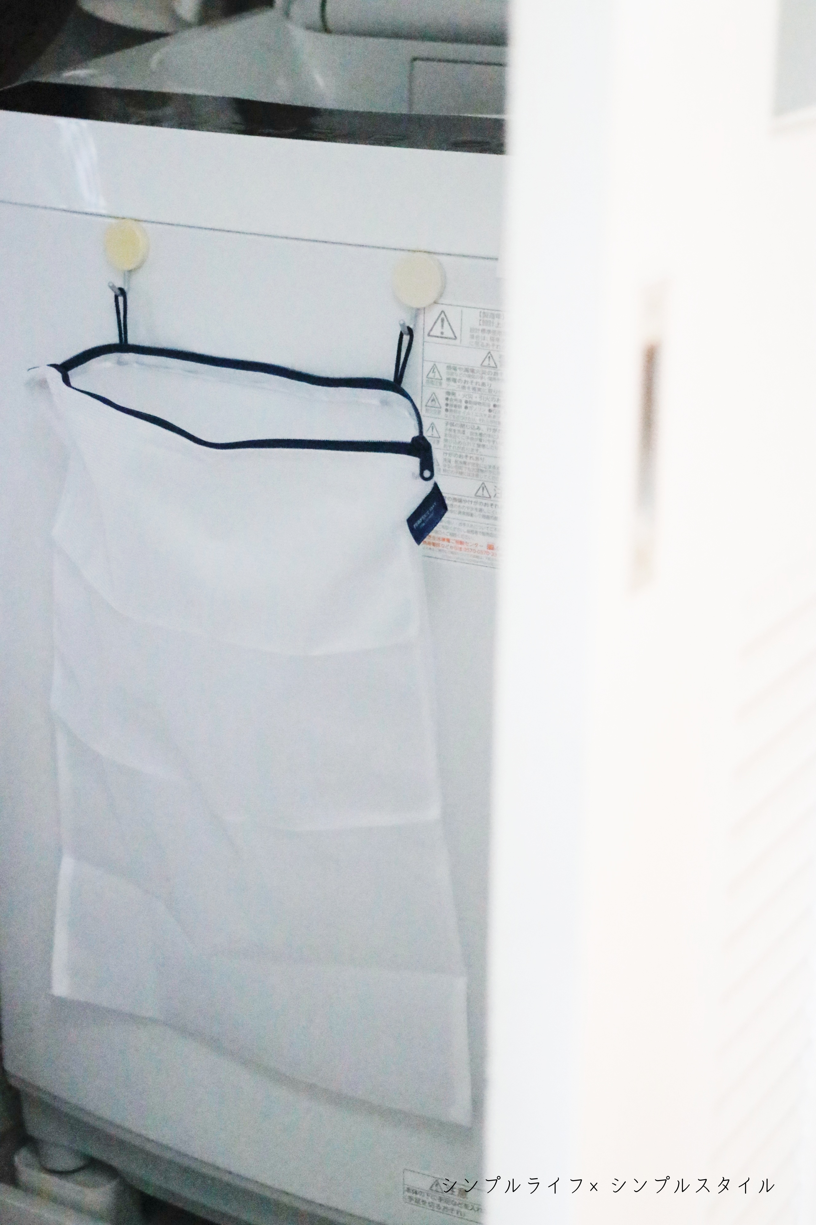 洗濯機の前面に掛けておけば
