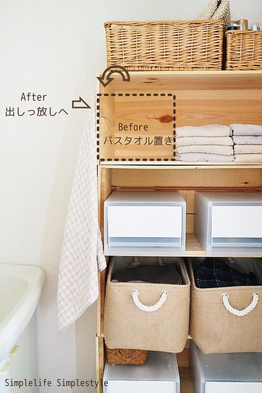 バスタオルを収納していた場所にスペースが出来、