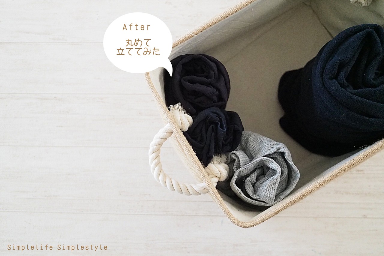 畳んだあとにクルクル丸めて立てて収納してみました。