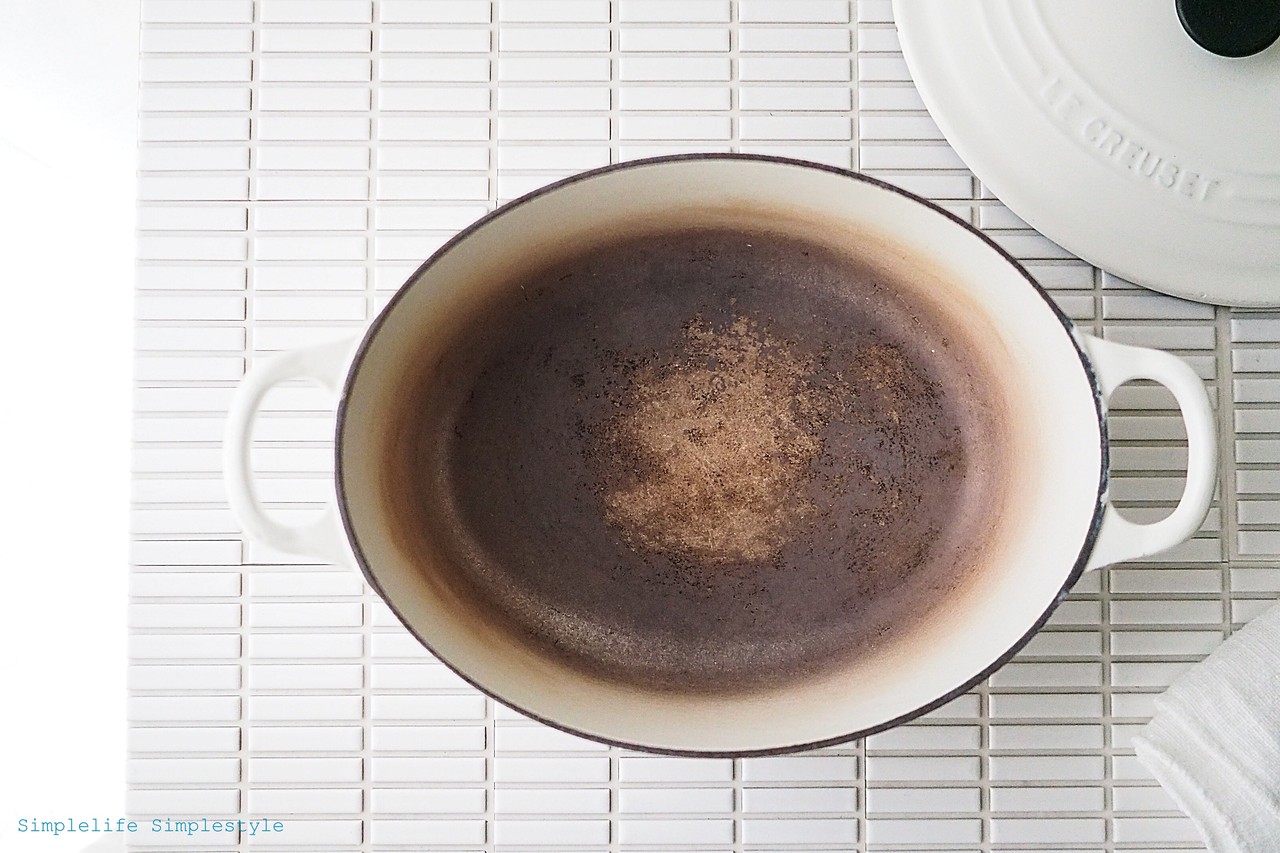 焦げ付きがひどかったのでメラミンスポンジでこすった後、