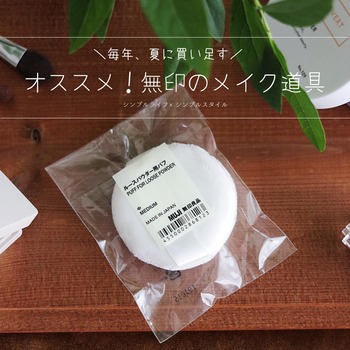 無印良品|必ず夏に買い替えるメイク道具とメンテナンス 2020年06月19日 美&健康 , MUJI&IKEA&ニトリ&イトーヨーカ堂 毎年、この時期になると買い替える無印アイテム。ルースパウダー用のパフです。無印ルースパウダー用パフ(中)¥290昨年あたりにリニューアルしたパフ。ホワイト一色になってよりシンプルになりました!年間通して3枚ほど替えのパフを洗いながら使っています。買い替え